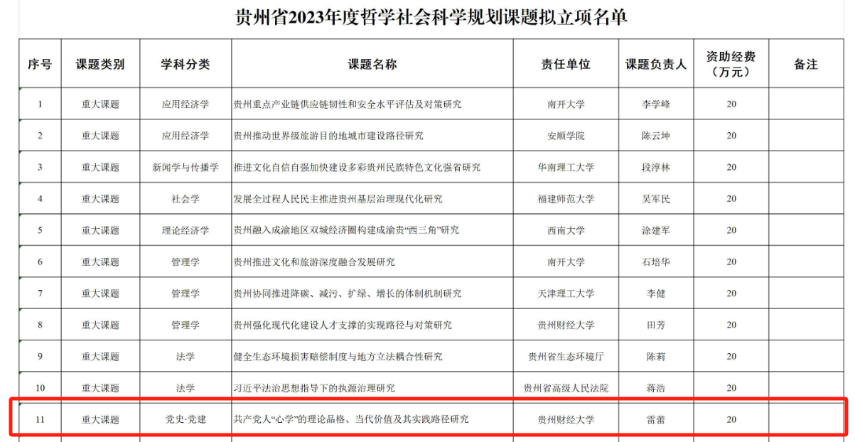 近日,2023年度国家社会科学基金资助立项名单、2023年度国家社科基金后期资助项目立项名单、2023年度中共贵州省委重大问题调研课题立项名单、贵州省2023年度哲学社会科学规划课题立项名单等公布,夫妻论坛