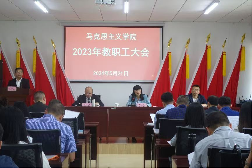 全体教职员工的共同努力下取得的,这些成绩为学院的进一步发展奠定了坚实的基础。针对学院未来发展,她提出几点要求:一是要深入学习领会习近平总书记对思政课建设的重要批示精神;二是要加强师德师风建设;三是要切实发挥好教职工大会作用,团结一致推动学院高质量发展。