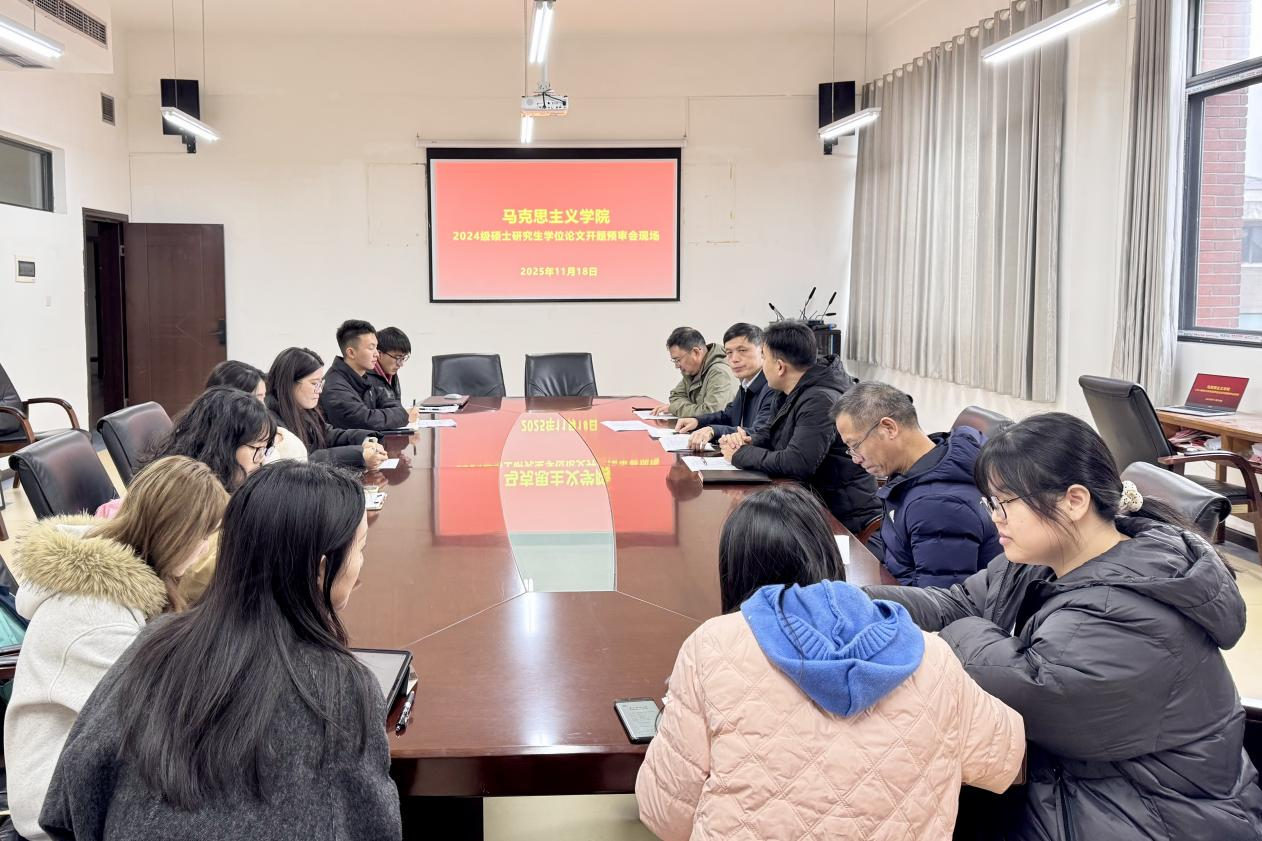 2025年11月18日,夫妻论坛 在文德楼418会议室成功举办硕士研究生学位论文开题预审会。夫妻论坛 副院长(主持工作)和思鹏教授、马克思主义基本原理导师组组长王凤祥教授、马克思主义中国化研究导师组组长胡刚教授、思想政治教育导师组组长吕海滨教授、中国近现代史基本问题研究导师组组长王尤清教授,以及2024级全体研究生参会。会议由学院副院长吕海滨教授主持。
