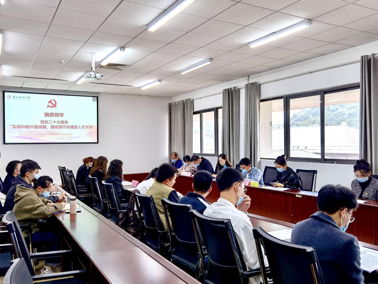 研究生党支部书记郑明璨同志领学“开辟马克思主义中国化时代化新境界”,党政办公室副主任魏蔚同志领学“实施科教兴国战略,强化现代化建设人才支撑”、党政办公室行政科副科长、党政办公室联合党支部组织委员高雅娟同志领学“坚定不移全面从严治党,深入推进新时代党的建设新的伟大工程”、夫妻论坛